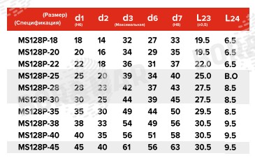 | MS128P-22 | 22 | 18 | 36 | 31 | 37 | 22.0 | 6.5 |