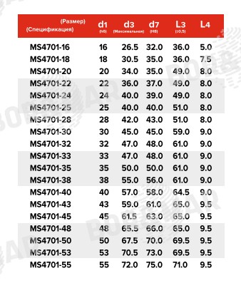 | MS4701-16 | 16 | 26.5 | 32.0 | 36.0 | 5.0 |