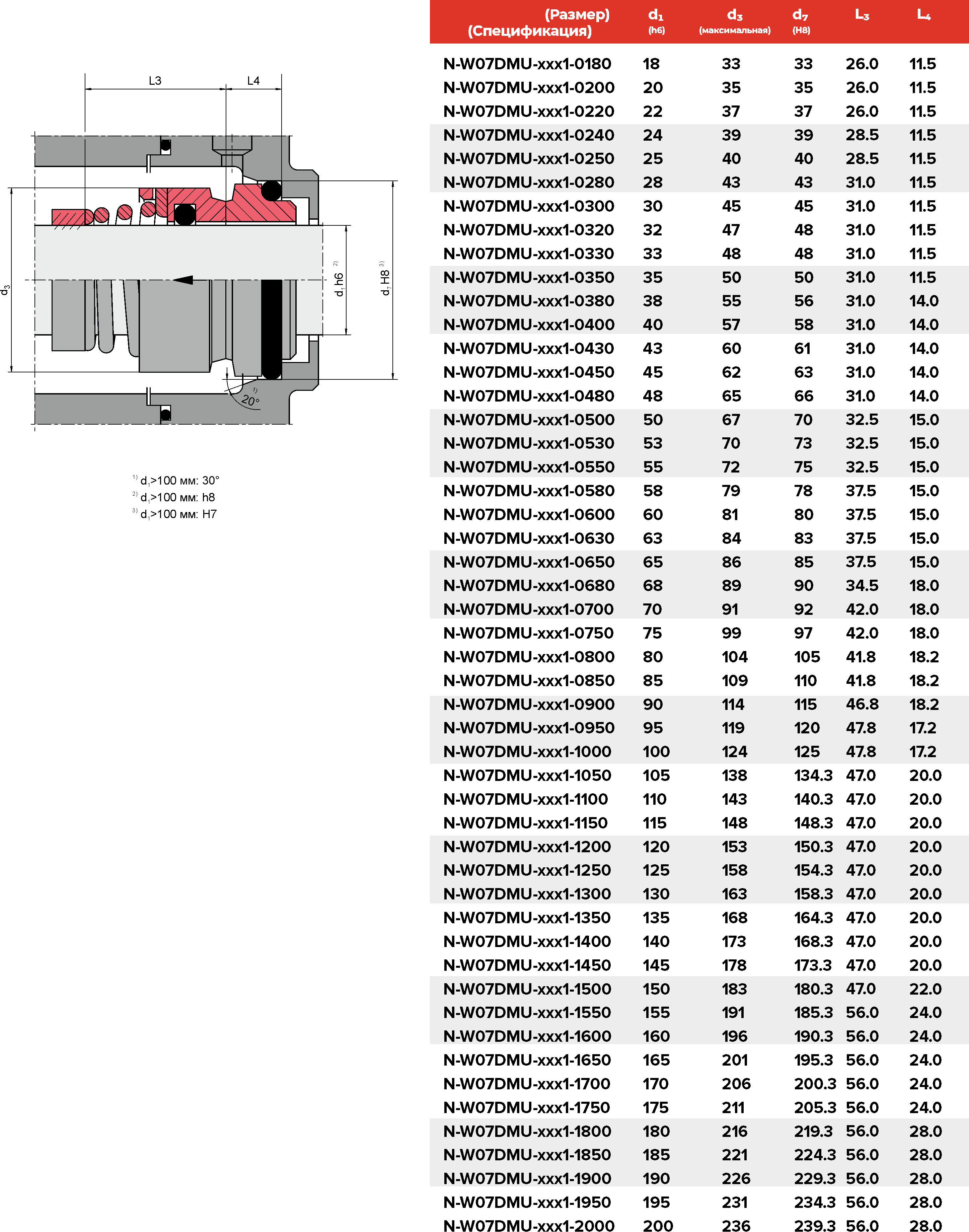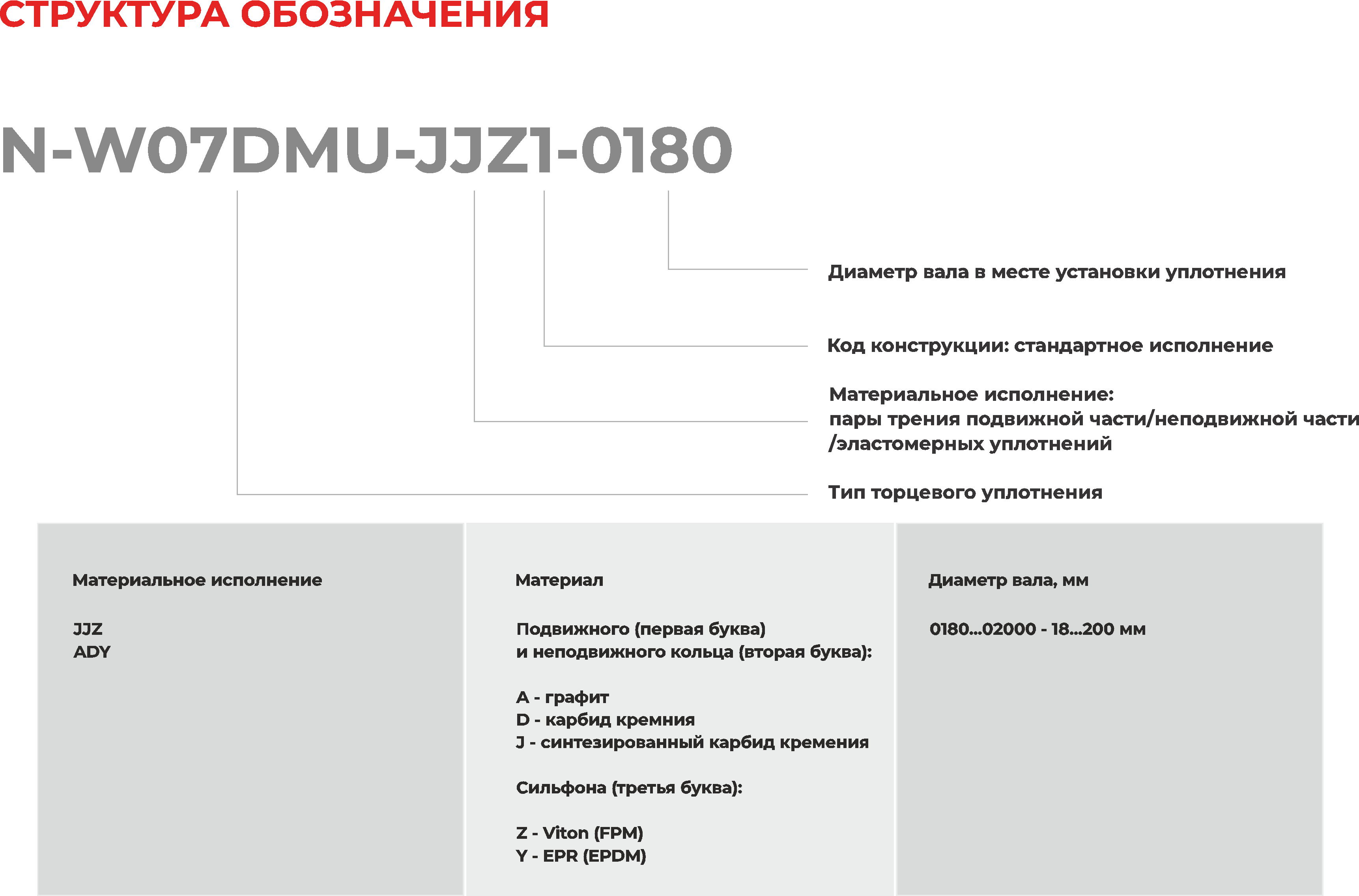 Характеристики торцевого уплотнения N-W07DMU-ADY1-1900